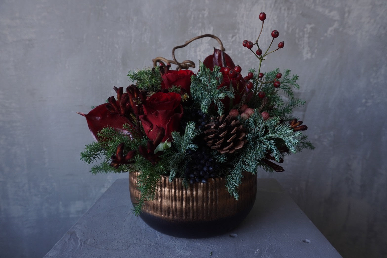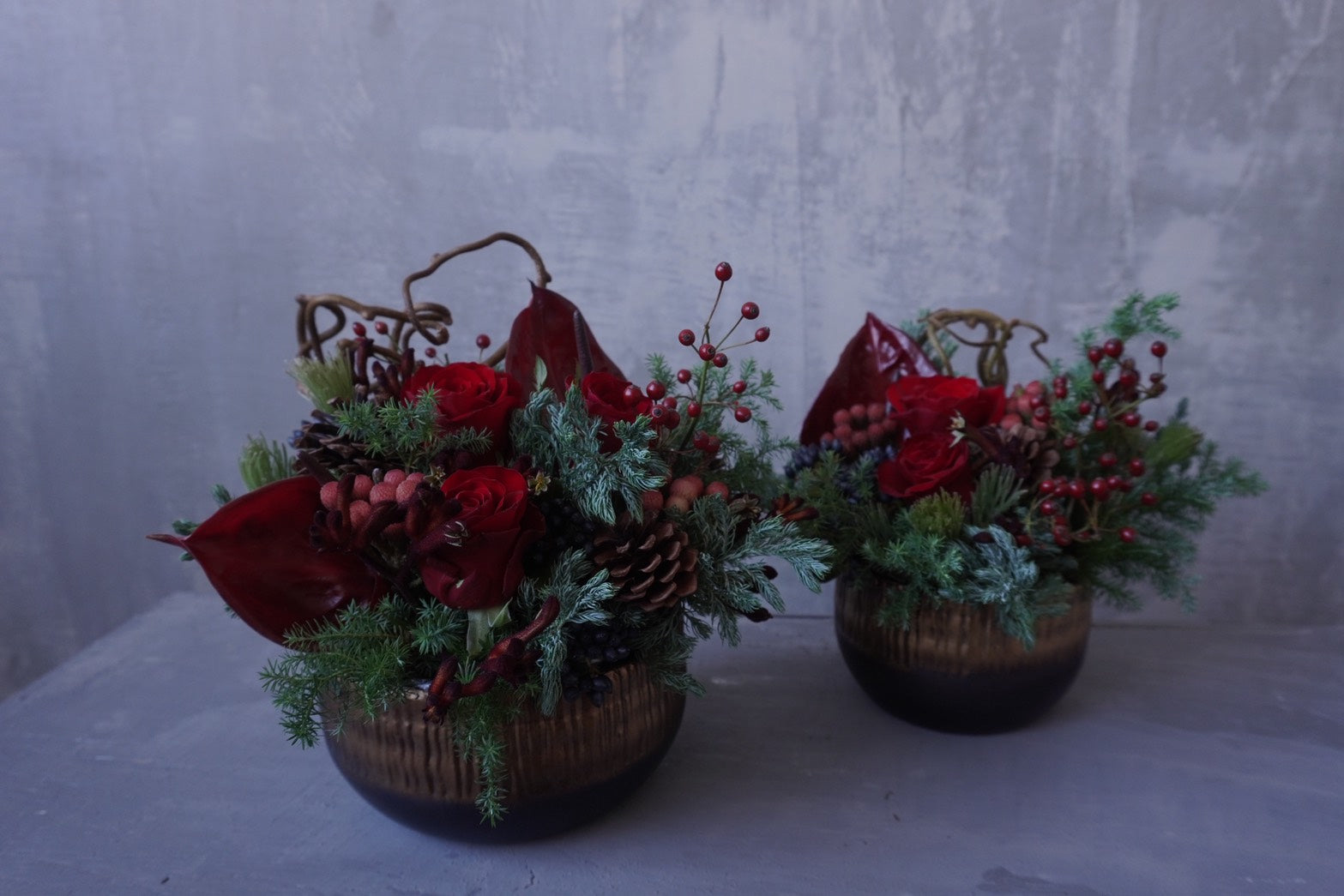 この季節の贈り物で一番ご要望の多い、クリスマスらしいアレンジメント