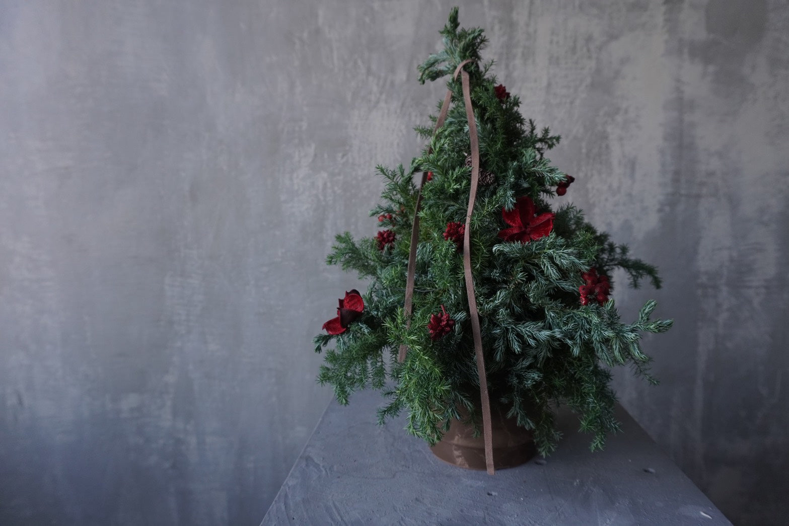 毎年人気のクリスマスツリー ご自宅やお店のカウンターなどにちょうどいいサイズです今年はオーナメントを3種より選んでいただけます